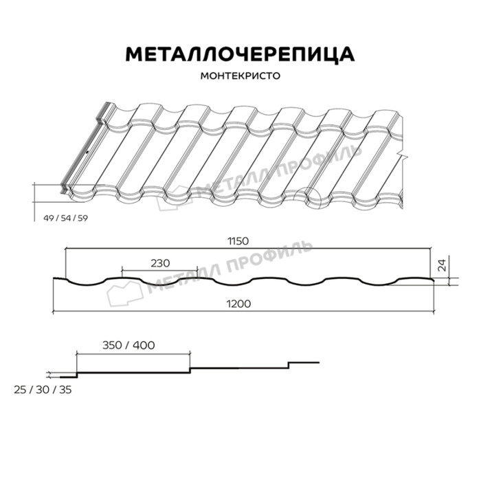 Металлочерепица Металл-Профиль Монтекристо-SL 0,5 NormanMP RAL 6005 Зеленый мох