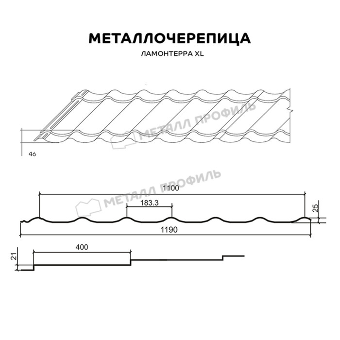 Металлочерепица Металл-Профиль Ламонтерра XL 0,45 Полиэстер RAL 7024 Серый графит